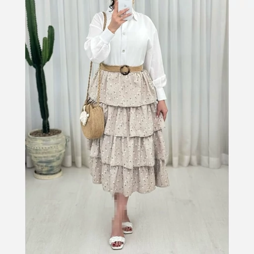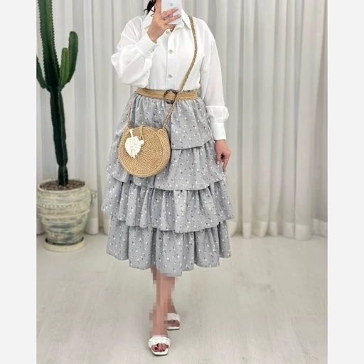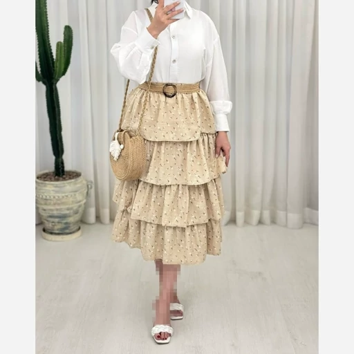 دامن طبقه ای گل گچی