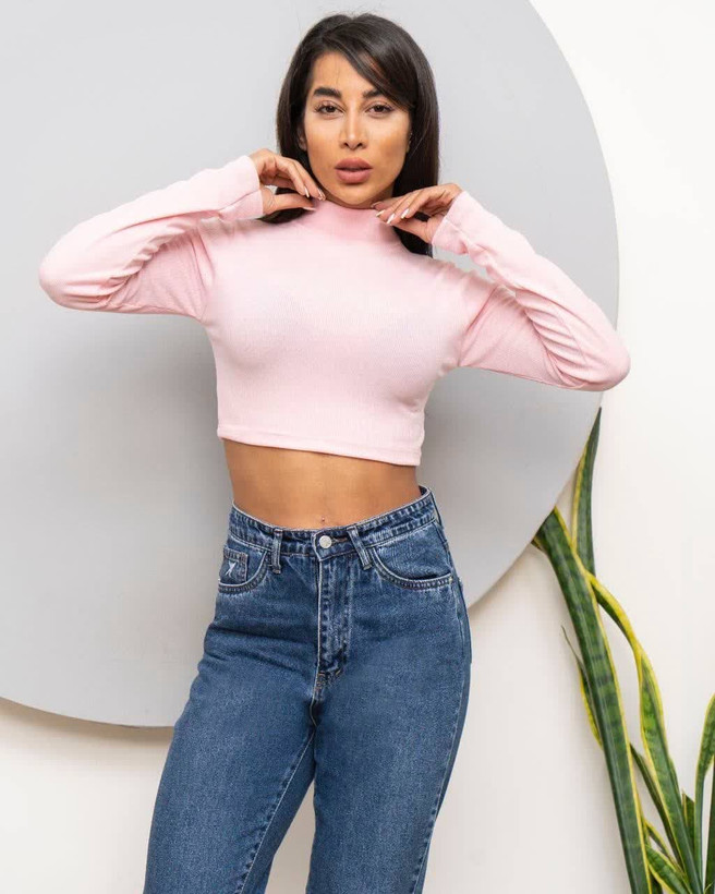 کراپ آستین بلند یقه سه سانت کوتاه