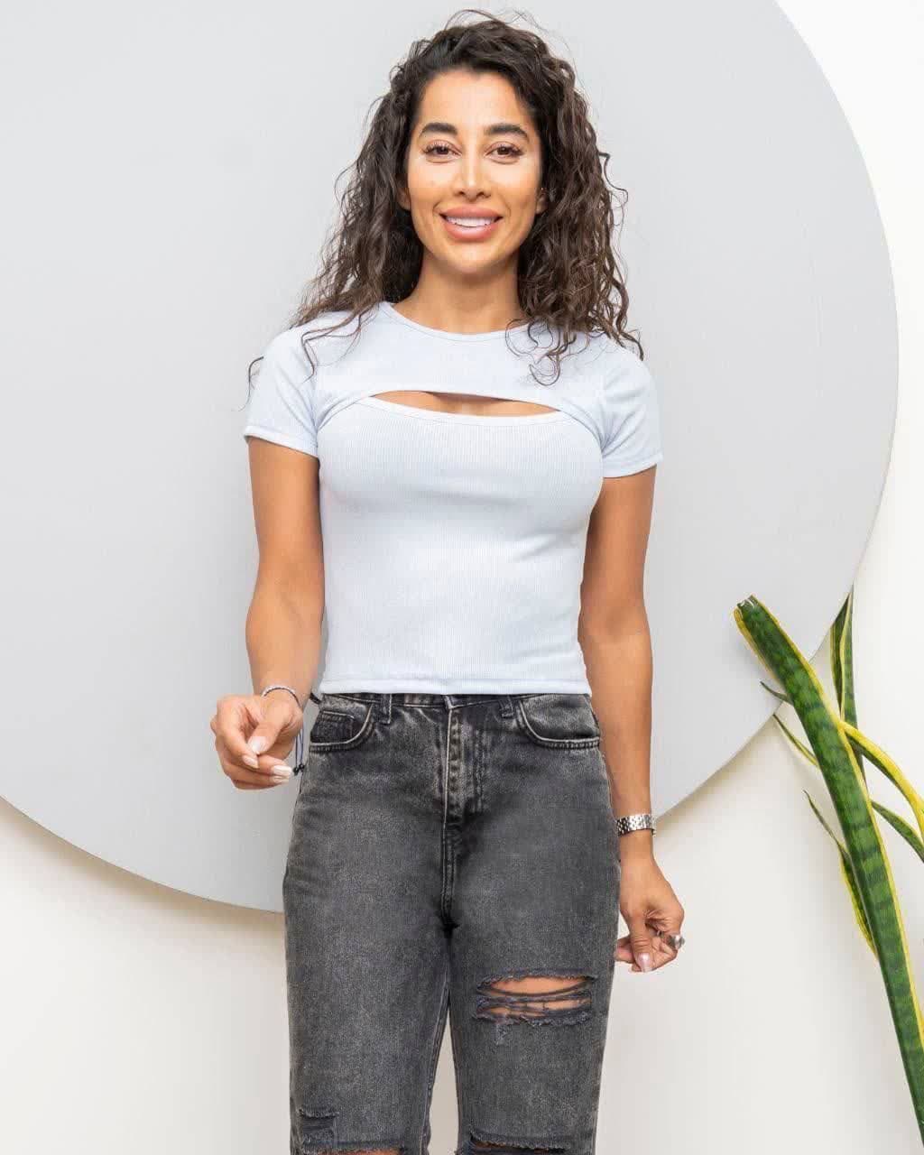 ناموجودکراپ تیشرت یقه خشتی ژور